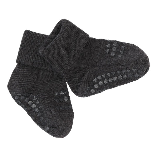 gobabygo antislip sokken wol dark grey melange 6-12 mnd 74-80