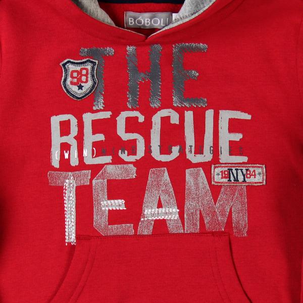 Trui The Rescue team in rood met grijs gemeleerde voering in capuchon