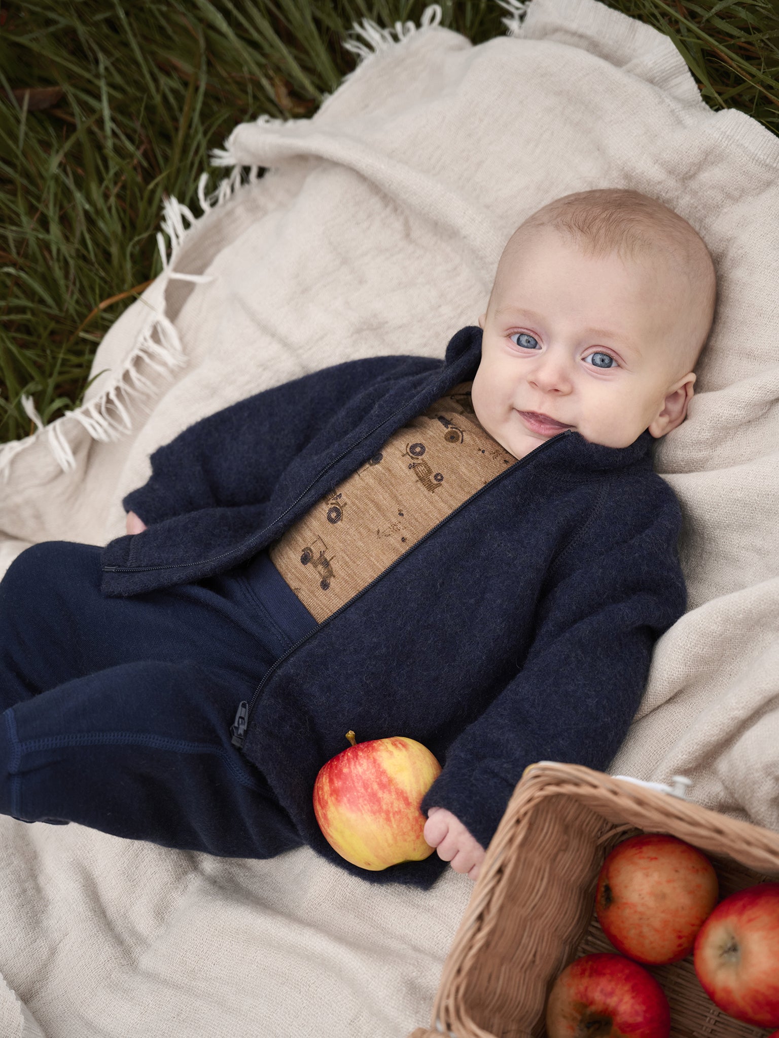 Effen jas van 100% wol van CeLaVi. De jas opent met een rits aan de voorkant. De kinbeschermer zorgt ervoor dat de kin beschermd wordt tegen de rits. Gemaakt van een zachte wolkwaliteit die comfortabel aanvoelt op de huid. Wol is een natuurlijk materiaal en bestand tegen zowel water als vuil. Wol is temperatuurregulerend. Gecertificeerd volgens OEKO-TEX® STANDARD 100 Cert. Nr. 2276-364 DTI. Dit product is gemaakt van merinowol en is WOOLMARK – Merino Extra Fine gecertificeerd onder licentie nm: 0030001353 door THE WOOLMARK COMPANY. Dit product is gemaakt van wol, bekend om zijn duurzaamheid bij goede verzorging: Was het alleen wanneer nodig. Selecteer een mild wolwasmiddel. Gebruik geen wasverzachter. Kies altijd het zachte wolwasprogramma in de wasmachine en keer het kledingstuk binnenstebuiten. Gebruik een laag centrifugeerprogramma. Hervorm het kledingstuk terwijl het nog nat is. Gebruik voor handwas lauw water en vermijd wringen; Druk zachtjes met een handdoek om overtollig water te verwijderen. Leg plat op een handdoek om te drogen - niet op de radiator of in de wasdroger.