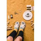 We kiezen zorgvuldig hoogwaardige garens om de duurzaamheid van de producten te garanderen. Bezorgd over het milieu en de ecologische impact, zijn onze pantoffels gemaakt om lang mee te gaan, om zo veel mogelijk overgedragen te worden binnen de broers en zussen, of in de familie en/of vrienden. Katoengaren wordt gebruikt vanwege zijn zachtheid, het is het hoofdbestanddeel, gebreid in een lus, wat zorgt voor een zachtere en comfortabelere pantoffel. Polyamide wordt gebruikt om de pantoffels nog meer stevigheid te geven, gemengd met lycra® elasthaangaren, het zorgt voor elasticiteit. Samenstelling: 88% katoen - 10% polyamide - 2% elastaan lycra®
