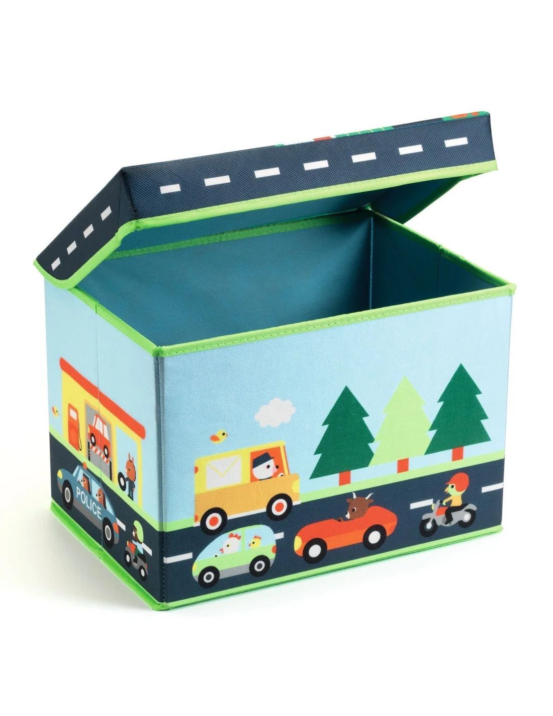 Een speelgoedkist voor circuitspel. Een mooi decoratief voorwerp om alles netjes te houden! Deze stevige speelgoedkist heeft een houten structuur en kan ook transformeren tot een racebaan om te spelen met je autootjes