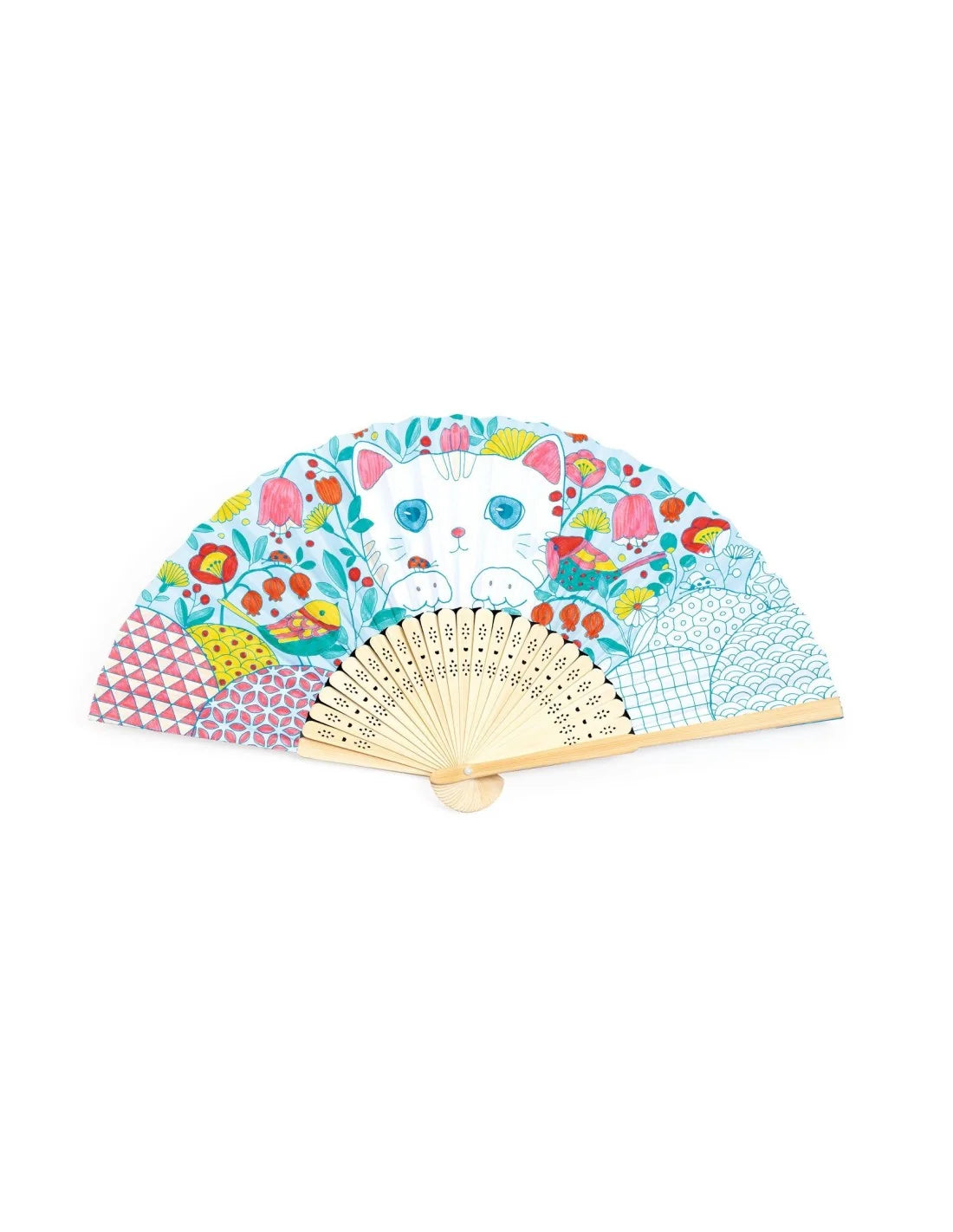 Een waaier met bijpassend beschermdoosje om in te kleuren, voor een unieke creatie die Koneko*, een schattige kitten, voorstelt (inkleuren met viltstiften aanbevolen). *Koneko betekent poesje in het Japans ;)