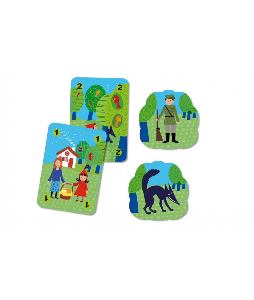 De eerste speler die 6 sprookjes-kaarten van Roodkapje bij elkaar brengt wint het spel. Maar... pas op voor de wolf !