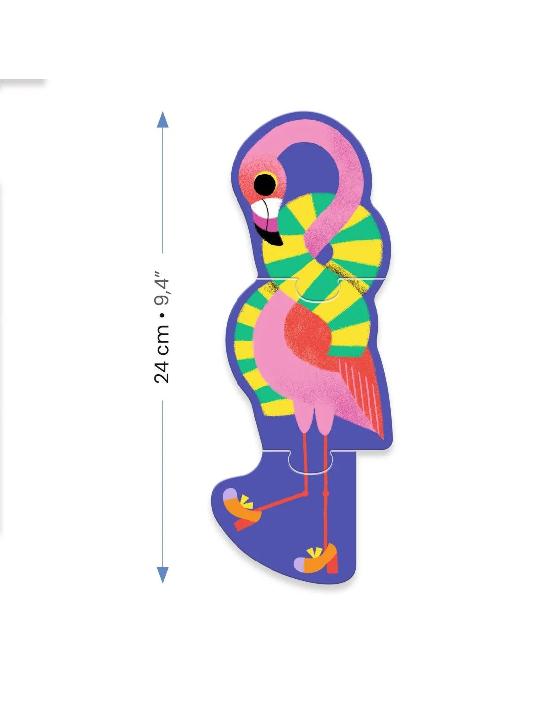 De trio-puzzel Savana is een educatieve dierenpuzzel voor kleine kinderen. Het kind zet de silhouetdieren in elkaar... op verticale wijze. Vanaf 3 jaar.