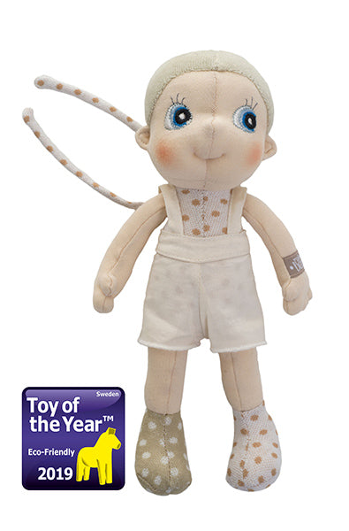 Rubens Mini EcoBuds-poppen zijn gemaakt van 100% biologisch katoen, gecertificeerd door Organic Content Standard (OCS) en hebben 100% Global Recycled Standard (GRS) polyestervezelvulling.