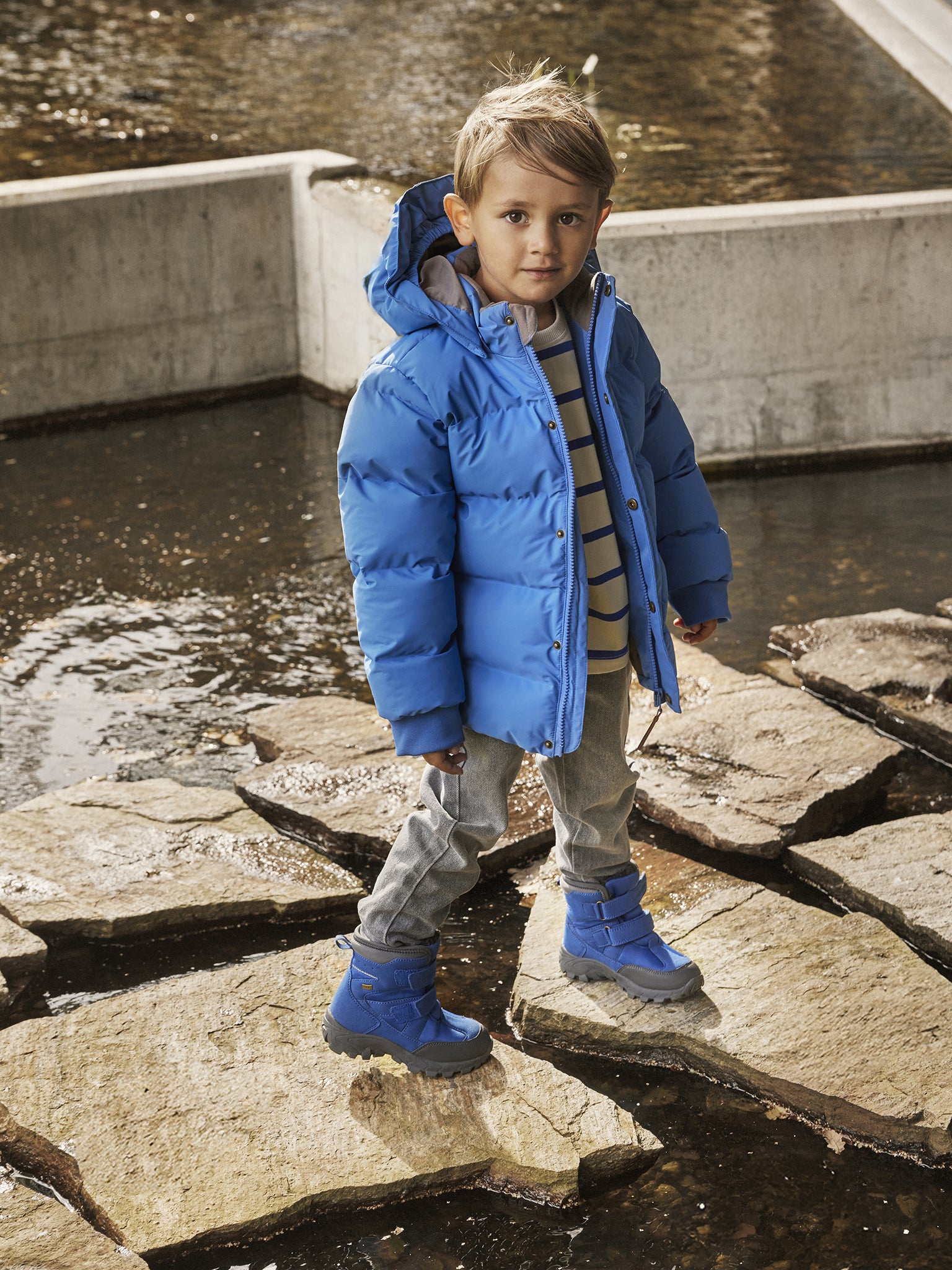 Warme gewatteerde jas van EN FANT in een stijlvol en praktisch design. De jas is ademend, winddicht en waterdicht met een geteste waterkolom van 8.000 mm en een ademend vermogen van 3.000 g, waardoor uw kind droog en warm blijft in regen, sneeuw en wind. Voorzien van een hoogwaardige rits aan de voorkant met kinbescherming voor extra comfort. De jas heeft een afneembare capuchon, elastische manchetten, een naamlabel aan de binnenkant en een zachte voering. Gecoat met BIONIC FINISH® ECO. Gecertificeerd volgens GRS - Gemaakt met meer dan 50% gerecycled materiaal CERES-0366, gecertificeerd volgens OEKO-TEX® STANDARD 100. Certificaatnr. 2476-411R DTI