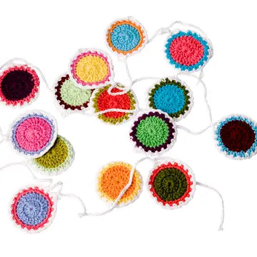 De stoffen gehaakte slinger Garland Crochet Rise and Shine is erg leuk voor verjaardagen, geboortes en andere momenten die gevierd kunnen worden. Hang deze vrolijke slinger op en het feest kan beginnen. Design by Ing-Things.com