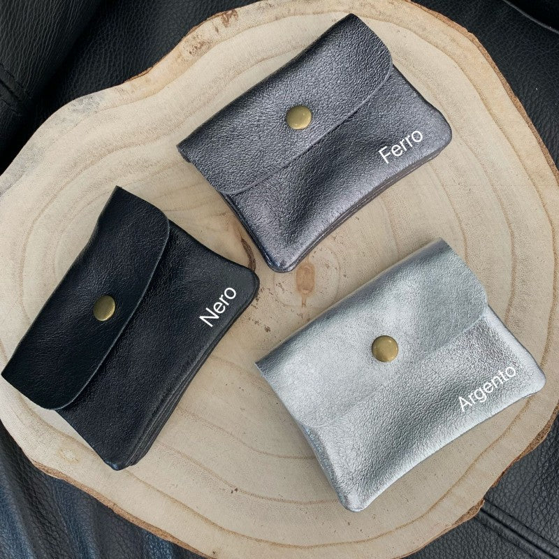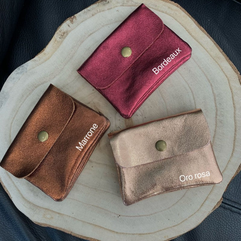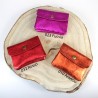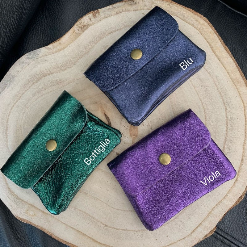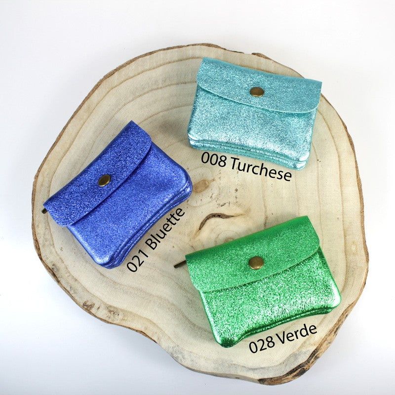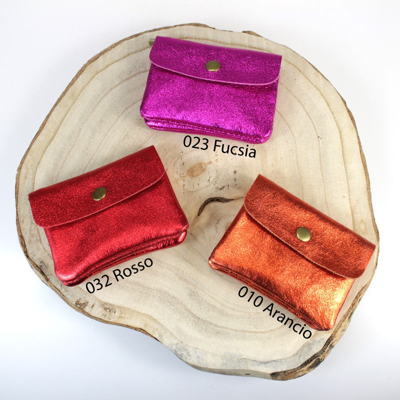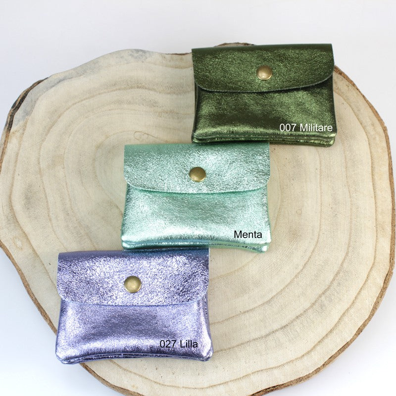 Mini leren metallic portemonnee/portemonnee met een klein vak voor contant geld en een vak met ritssluiting.