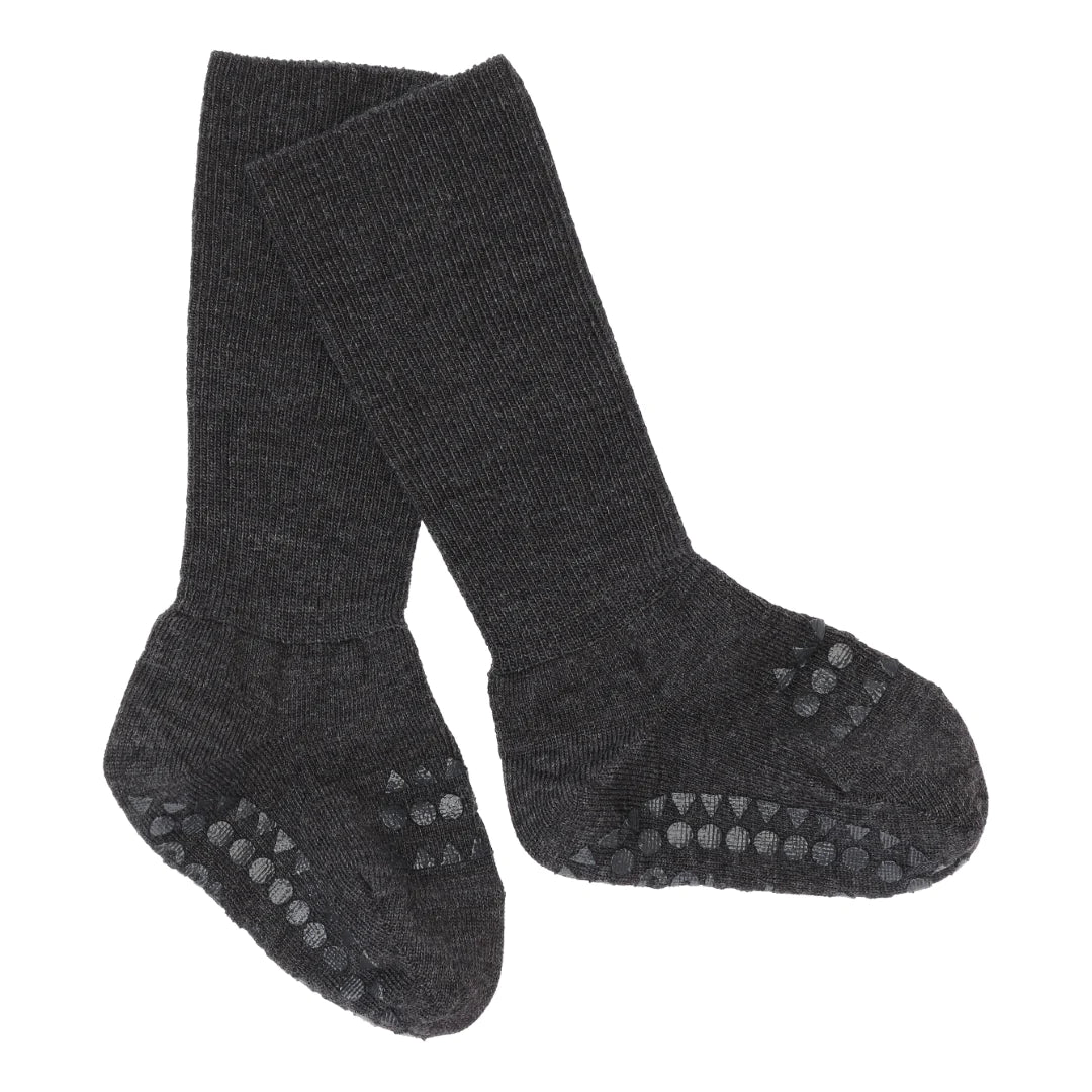 De wollen maillots zijn gemaakt van zachte Superwash-wol, die comfortabel zit en zorgt voor een goede beweging en warmte voor het kindje. Wol is temperatuurregulerend, dus in een verwarmde omgeving zal de warmte van het lichaam geventileerd worden zodat de voetjes niet gaan zweten en droog blijven. In een koude omgeving wordt de warmte die het lichaam afgeeft geïsoleerd zodat het kindje warm wordt gehouden. Bovendien heeft wol een zonbeschermende werking en fungeert het als een natuurlijk UV-filter.Wol kan ook tot 30% van zijn eigen gewicht aan water opnemen zonder nat aan te voelen.De wollen maillots met antislipzolen en antislipnoppen op de tenen maken de baby stabieler bij de eerste stapjes en houden het kindje tegelijkertijd warm op zowel een warme als koude ondergrond. GoBabyGo wollen maillots zijn getest op verontreinigende stoffen en zijn Oeko-tex Standard 100 gecertificeerd. De Oeko-Tex Standard 100 is een garantie dat de producten zijn gecontroleerd op het gehalte aan schadelijke chemicaliën en dat er alleen biologische textielproducten zijn gebruikt in het productieproces die geen schadelijke effecten hebben op de menselijke gezondheid en het welzijn. De antislip siliconen pads zijn ook goedgekeurd volgens deze norm.Enkele kenmerken van de wollen maillots op een rij:Materiaal: 80% wool, 17% Polyamide, 3% ElastanMaten: 6-12 maanden, 1-2 jaarDe antislip rubberen pads zijn gemaakt van siliconen en zijn vrij van ftalaten