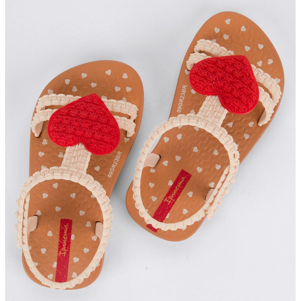 My First Ipanema Baby. Voor de allereerste stapjes bieden we de My First Ipanema sandaaltjes met het hart en een indruk van 'oma's breiwerkje'. Een onweerstaanbaar én comfortabel sandaaltje voor fashionable meisjes van de toekomst. Met de drukknoopjes kan het sandaaltje versteld worden naar de gewenste enkelomvang.