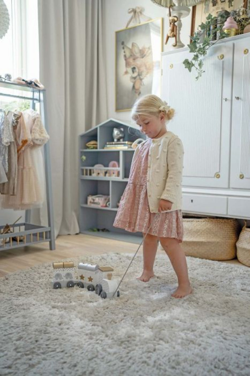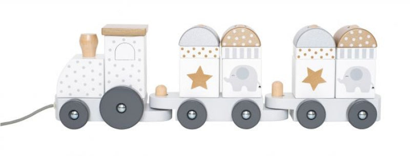 Leuk accordeon speelgoed in de vorm van een trein met stapelbare blokken. Stap op en af en neem de trein. Het trekspeelgoed stimuleert het spel van het kind en het kind leert tegelijkertijd kleur en vorm terwijl het coördinatievermogen wordt getraind.