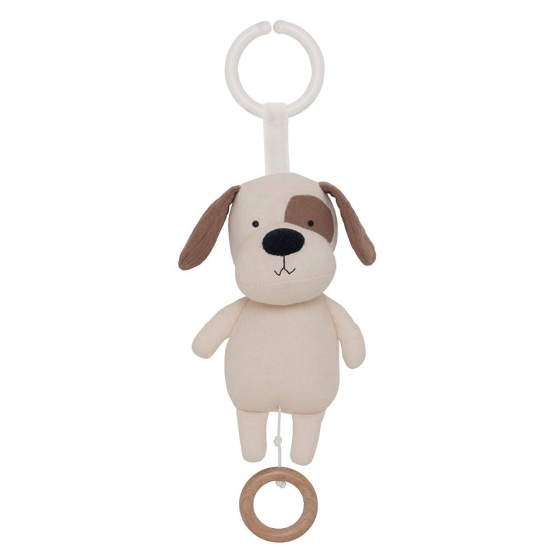Leuke speelklok in de vorm van een puppy om in de kinderwagen te hangen. De speelklok is eenvoudig te bevestigen met behulp van de bijbehorende ring.