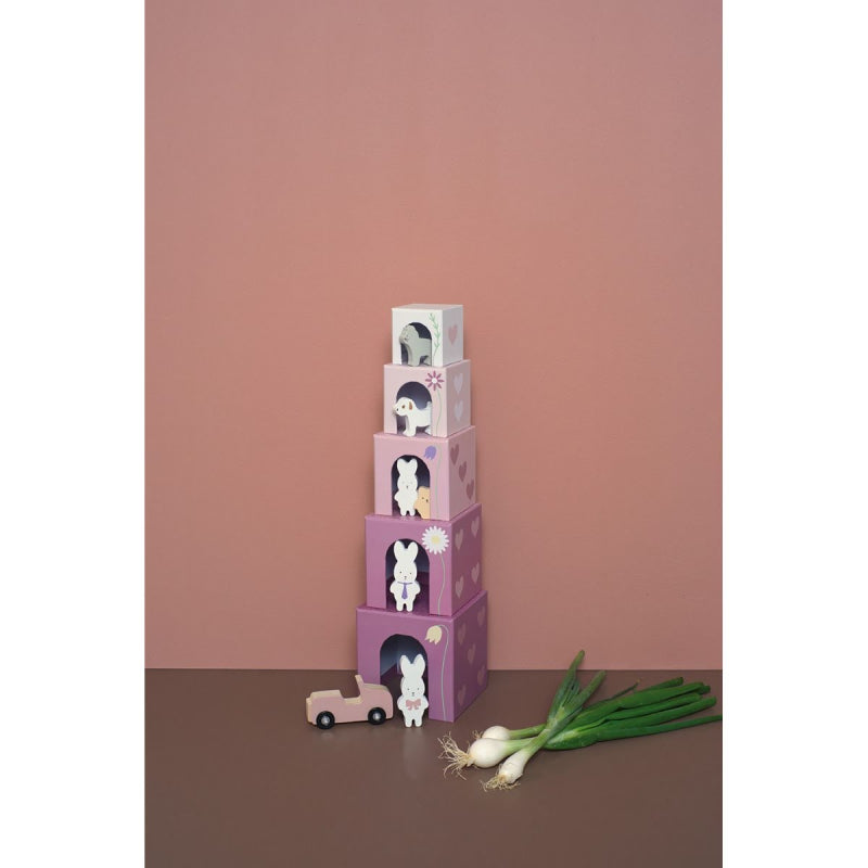 Een eenvoudige, leuke en leerzame manier om te leren tellen. De schattige blokken worden ook een leuk interieurdetail voor de kinderkamer waar je kind veel plezier mee kan hebben. In de verschillende kubussen staan verschillende dieren waarmee je kunt spelen en je kunt verplaatsen tussen de verschillende huizen.