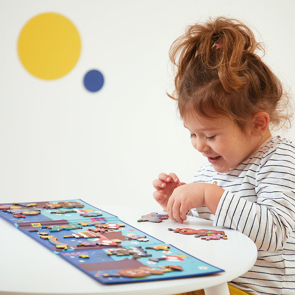 Open dit boek en neem deel aan het grote dierenfeest! De leeuw en olifant spelen percussie en de krokodil wacht het juiste moment af om zijn cadeau te geven! Met de 30 magneten en het groot magnetisch decor geeft uw kind alles wat nodig is om de leukste feestjes te verzinnen. Dit leuk boek heeft de ideale grootte om overal mee naartoe te nemen! Magnetisch speelgoed van FSCTM-karton Speelgoed voor kinderen vanaf 3 jaar. Afmeting 18×18 cm.