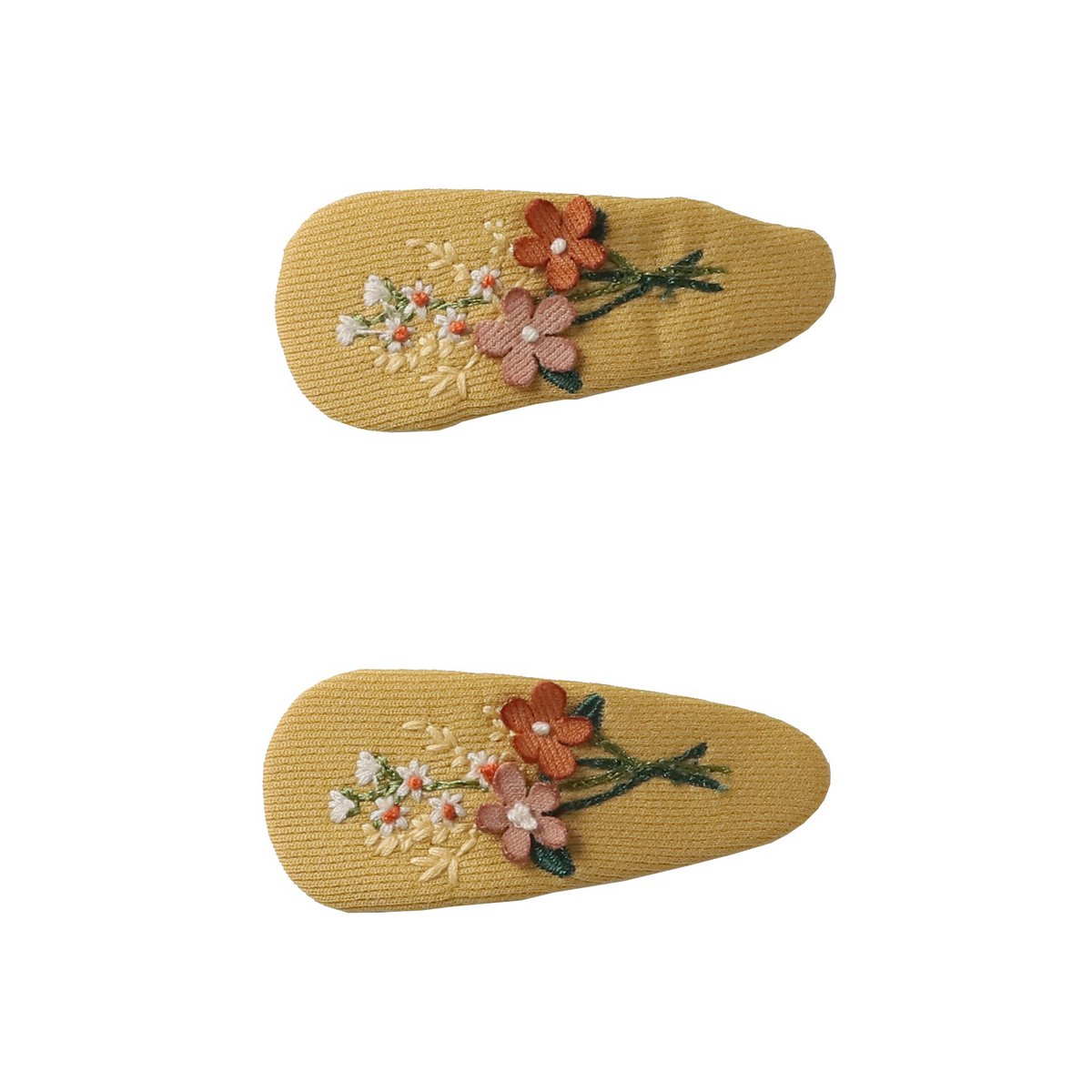 Onze Mildred-haarspeldset is een eerbetoon aan vervlogen tijden. Het bovenste deel van de sluiting is volledig ingebed in zachte stof met betoverend nostalgisch bloemenborduurwerk. Een trouwe metgezel, zowel in het dagelijks leven als op vakantie.