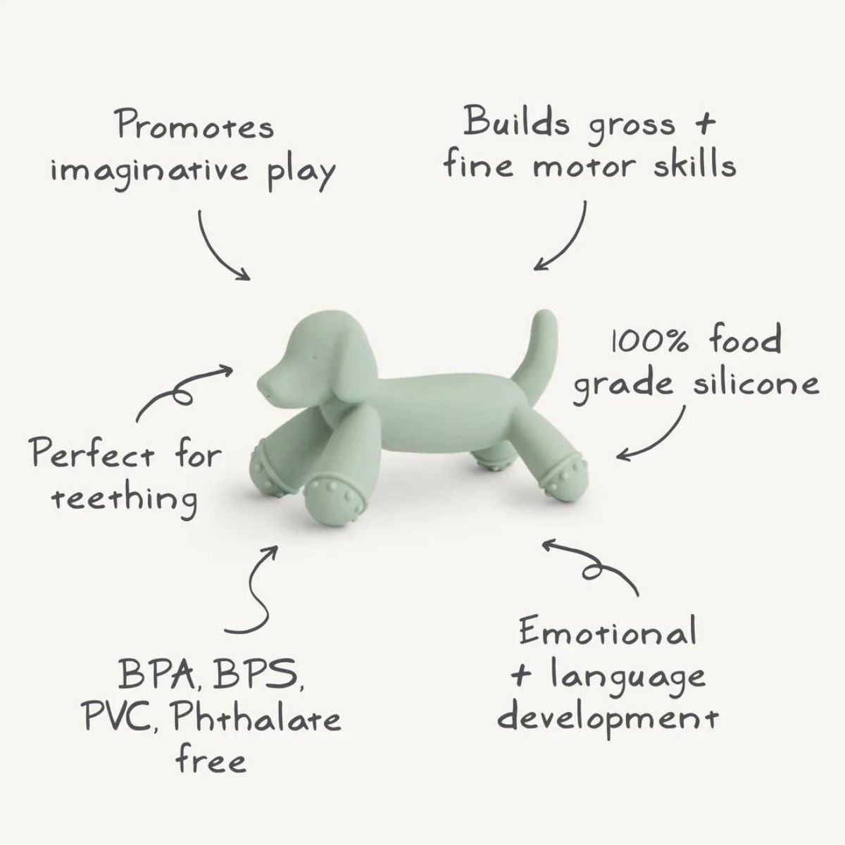 Deze Figurine Teethers zijn gemaakt van voedselveilige silicone en zijn zacht voor het gevoelige tandvlees van je baby.