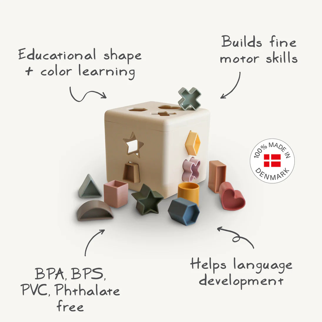Onze vormensorteerdoos is gemaakt in Denemarken en vormt het toneel voor zeer betrokken spelen met eindeloze mogelijkheden voor praktijkgericht leren. Met 12 vormen in zachte kleuren breiden kinderen hun fijne motoriek uit door vormen aan te passen aan de bijbehorende uitsparingen.