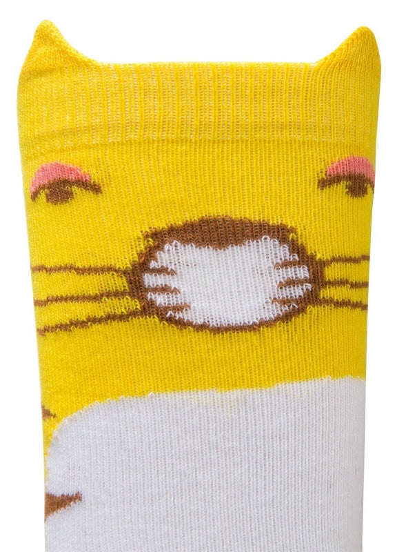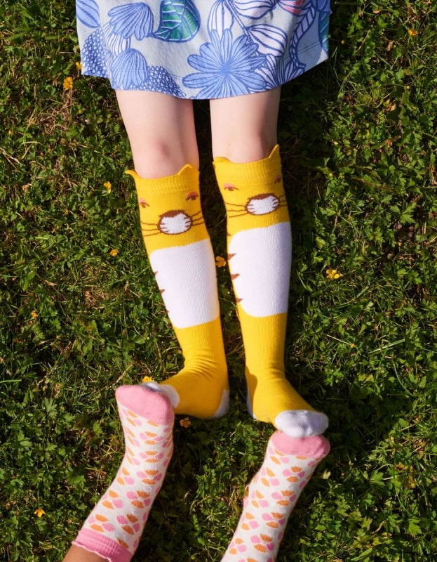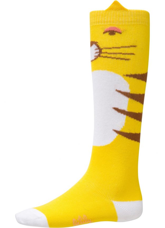super coole kniekousen in het geel met tijgerhoofdje.