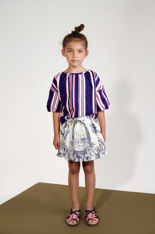 Shirt gemaakt van slub jersey met een gestreept kite-parachute print. Draagt lekker comfortabel en is geschikt voor alle lichaamsvormen dankzij de grote volume.