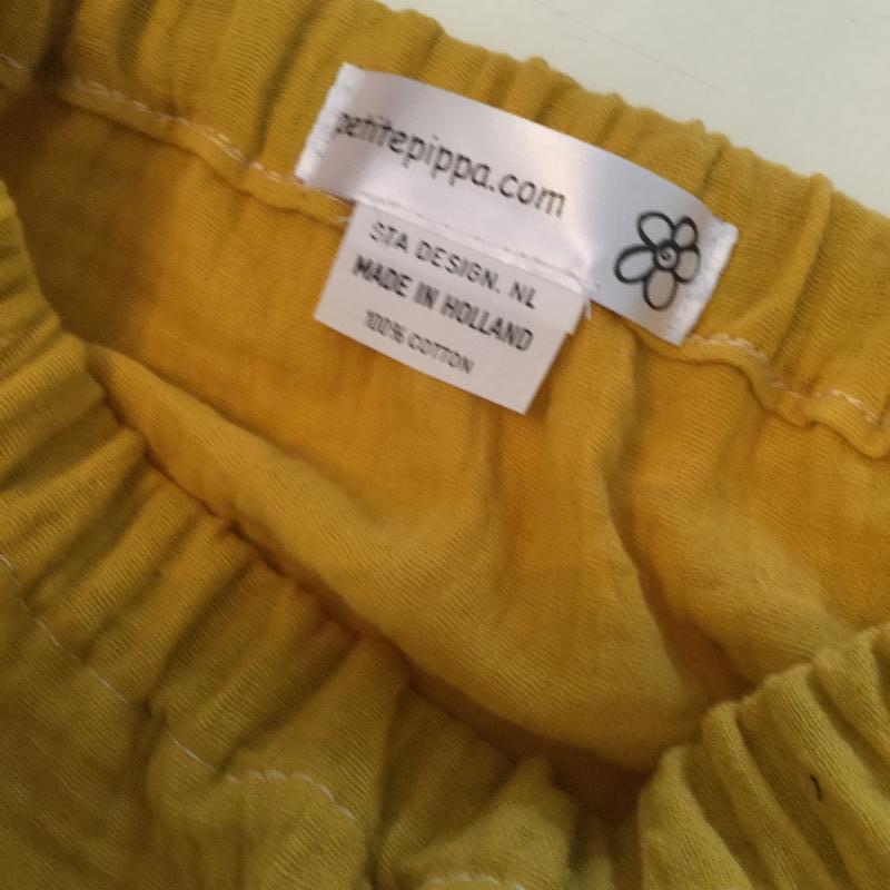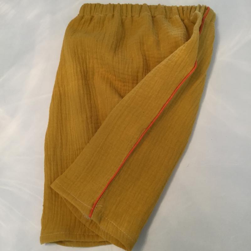 petitepippa babybroekje met piping gemaakt van 100% katoen hydrofieldoek en piping in de zijnaad.