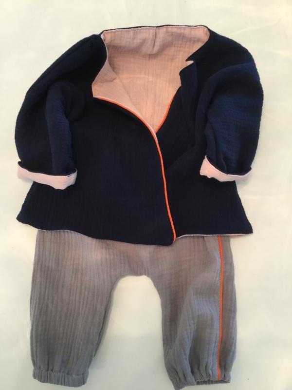 petitepippa overslagjas reversible piping gemaakt van 100% katoen hydrofieldoek in 2 kleuren met piping op voorpand.