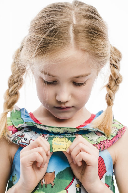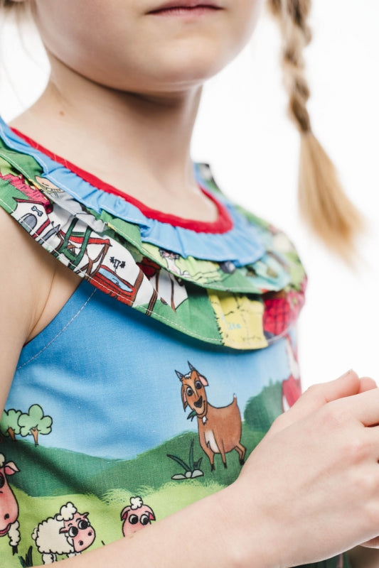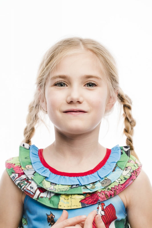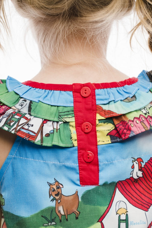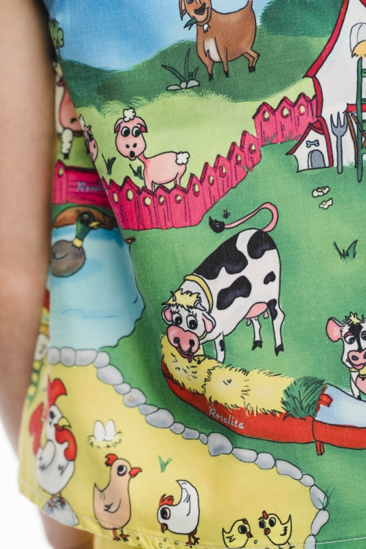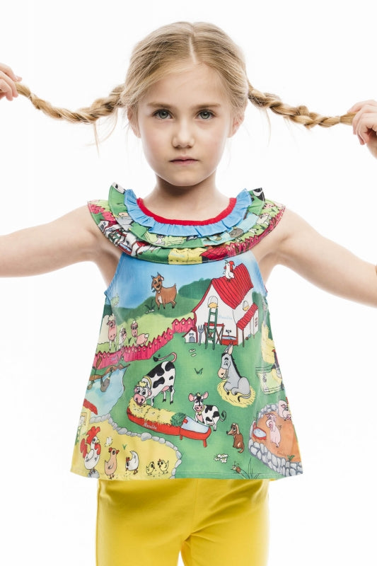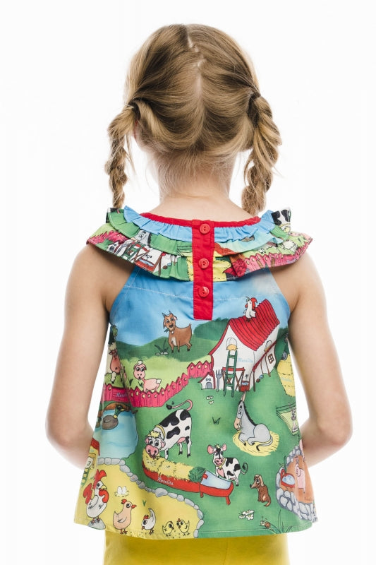 - description: original top with lacing on the collar, combined colorful illustration of animals, with vichi print