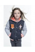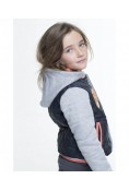 Jack met jogging mouwen grijs en navy gestept lijf, drukknoopsluiting, 2 zijzakken & afneembare capuchon