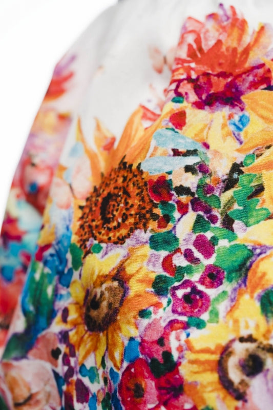 - Description: Skirt with wide shape elastic waistband and big colourfull flower printing