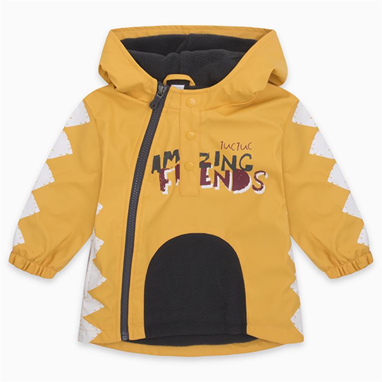 Tuctuc regenjas amazin friends oker geel met capuchon en a-symetrische ritssluiting